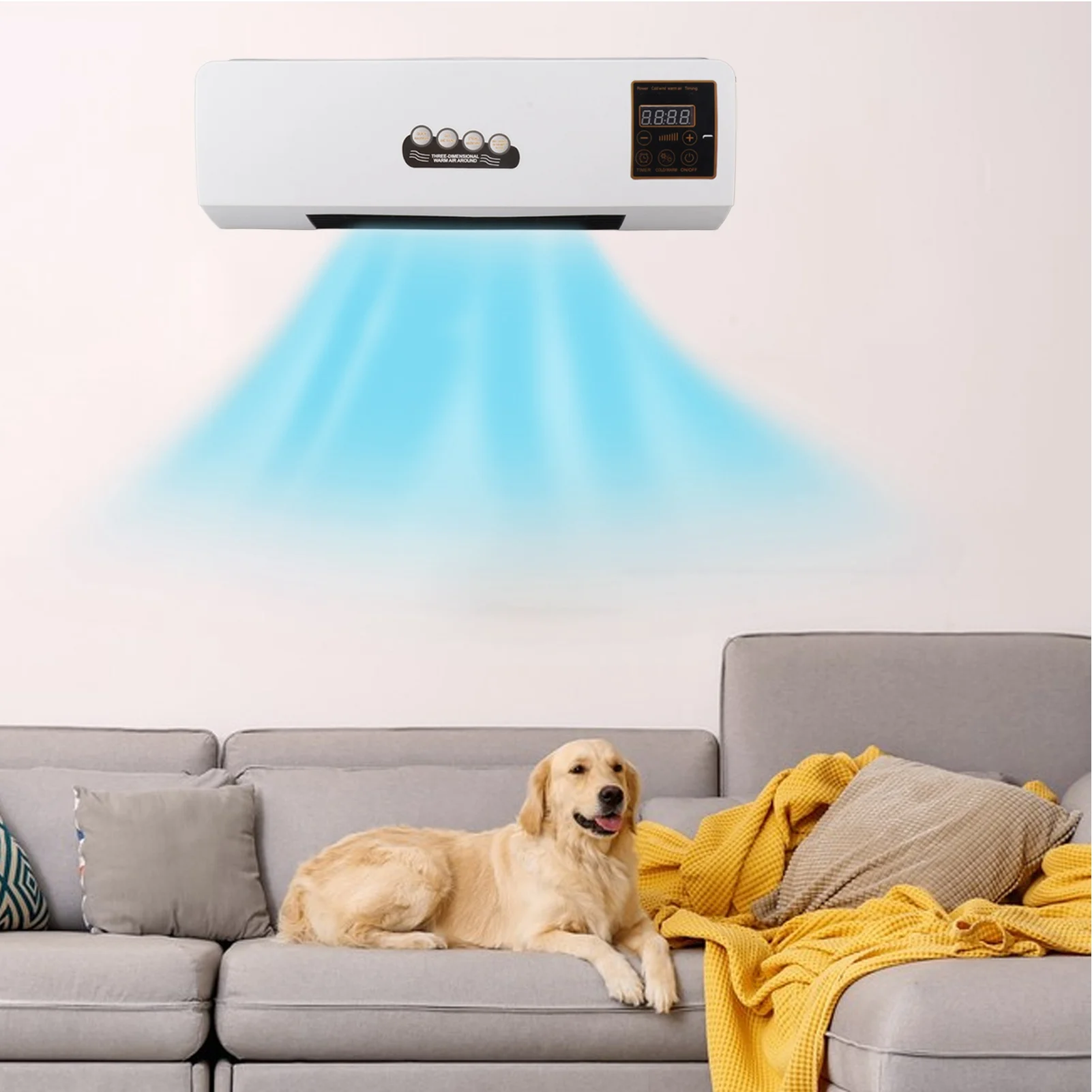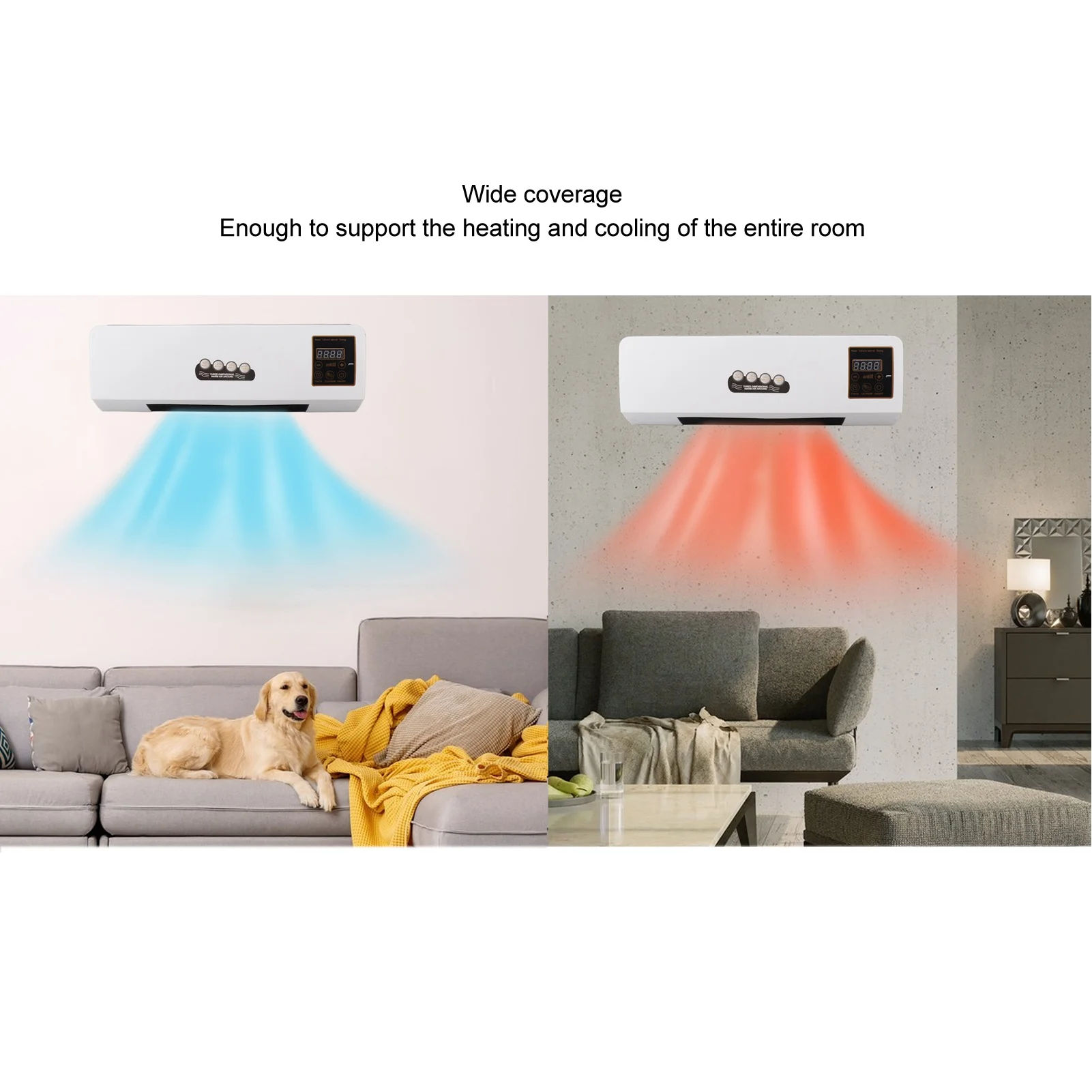 1800W Wall Mounted Air Conditioner Heater Electric Cooling Heating Machine PTC Heating Element Heater with Remote Control Timer for Bedroom Bathroom 220V English Version
