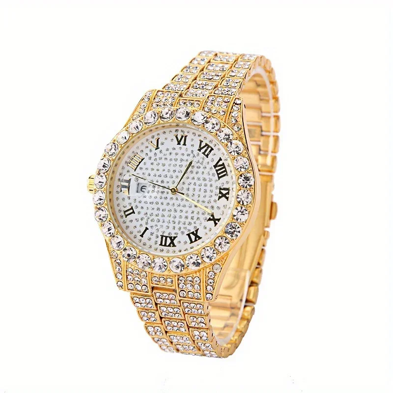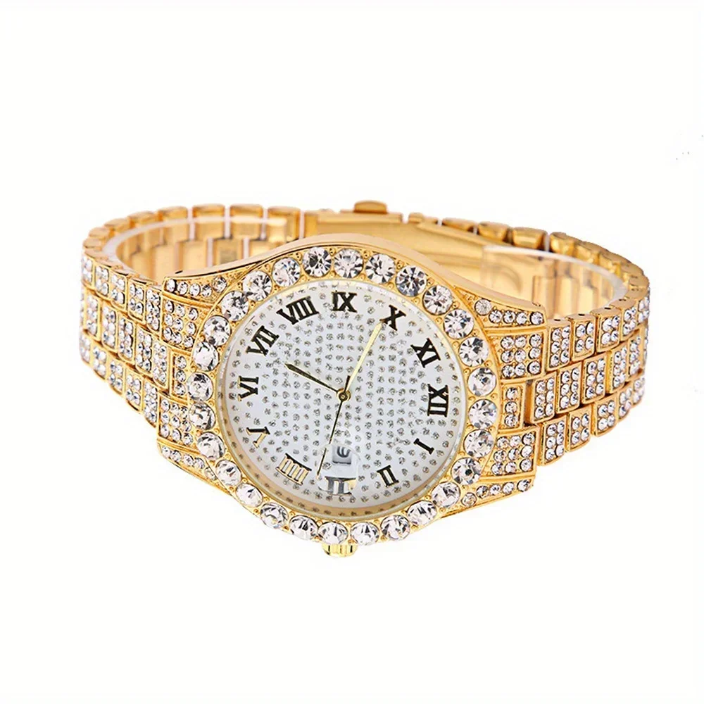 2pcs/set – Glitzy Rhinestone Watch & Cuban Link Bracelet Set