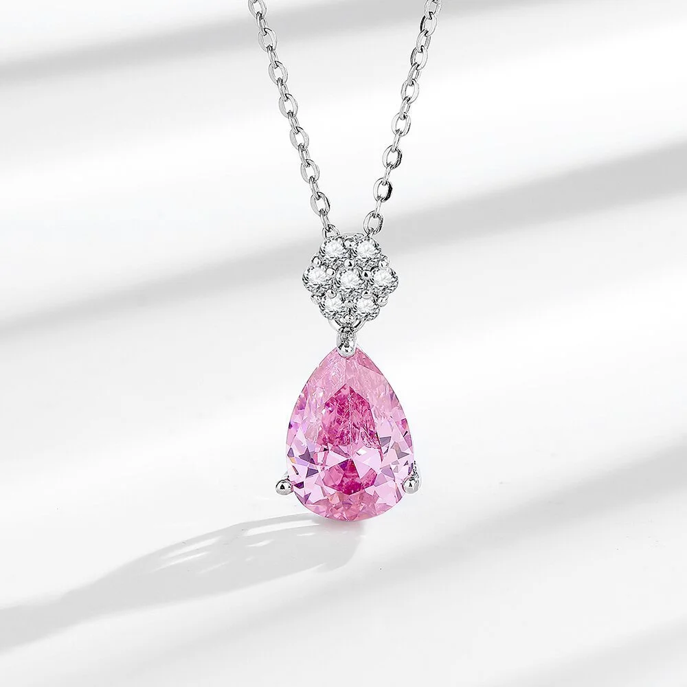 925 Sterling Silver Jewelry Set Shiny Rose Quartz Zircon Women Necklace Earrings Birthday Wedding Party Jewelry Gift