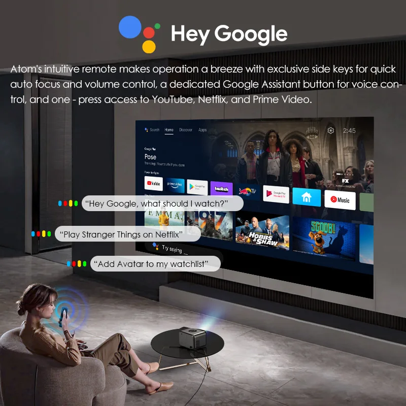 ⑤ Google Assistant Built-in: Control your projector with just your voice.