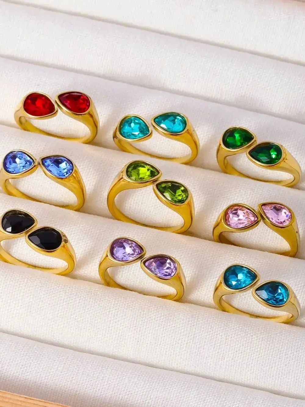 Be the first to review “CARLIDANA Titanium Steel CZ Water Drop Ring – Women’s Gold”