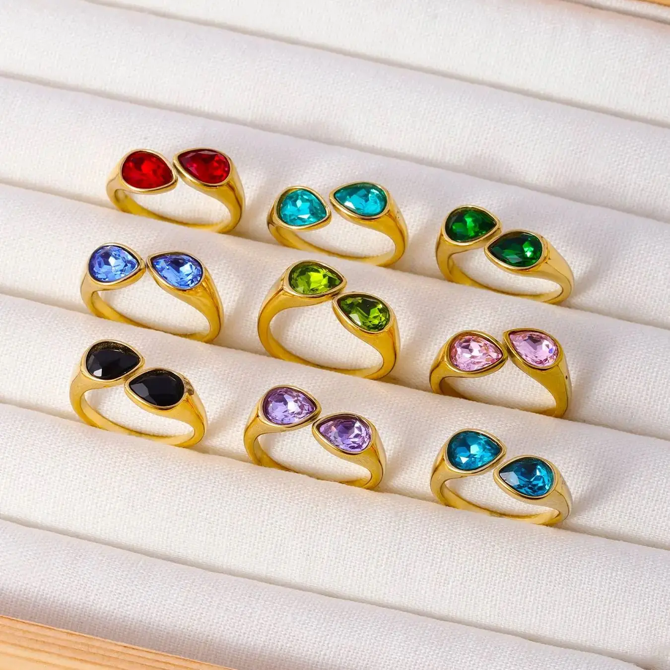 CARLIDANA Titanium Steel CZ Water Drop Ring – Women’s Gold