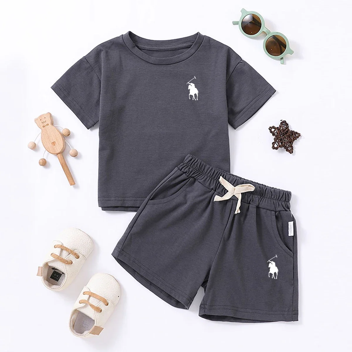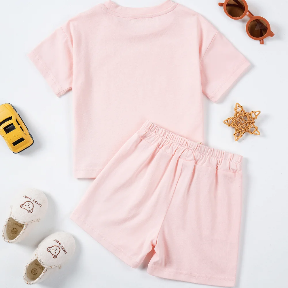 Cotton Toddler 2pcs Boys Girls Printed Round Neck Top