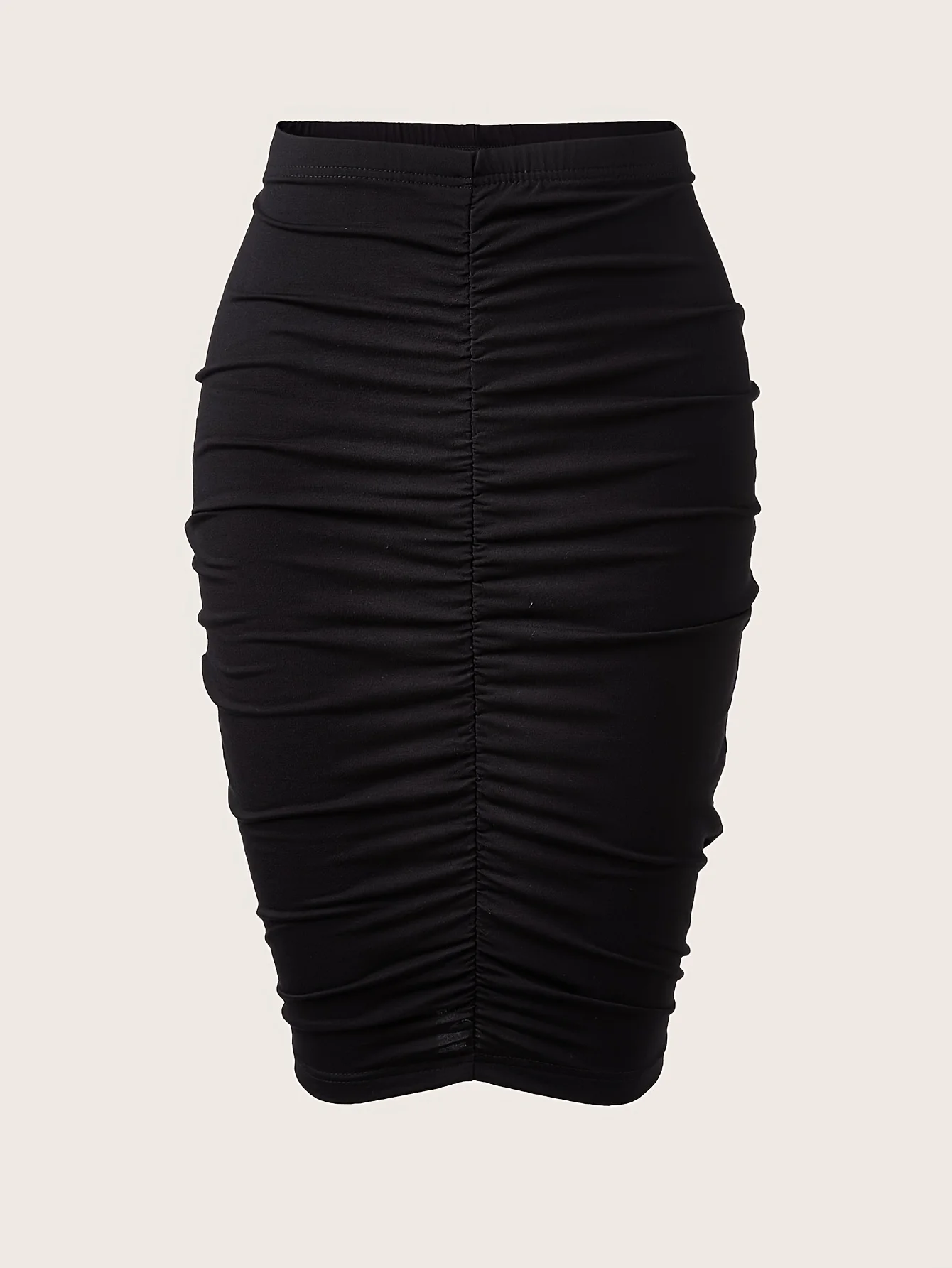 Elegant High Waist Ruched Skirt with Back Vent for Women
