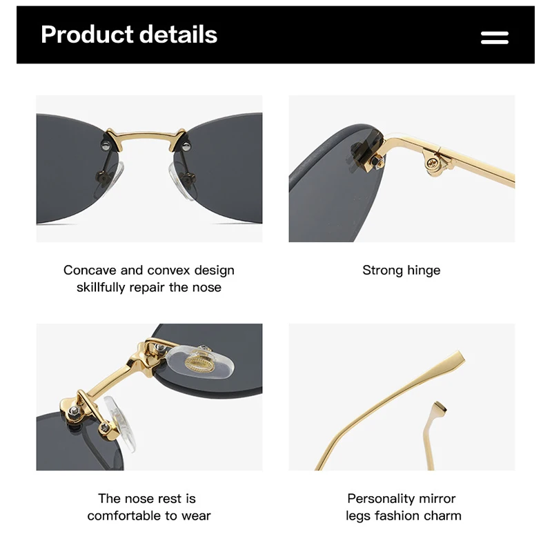 Fashion Rimless Sunglasses Women UV400 Oval Elegant Diamond F Sun Glasses Retro Eyewear