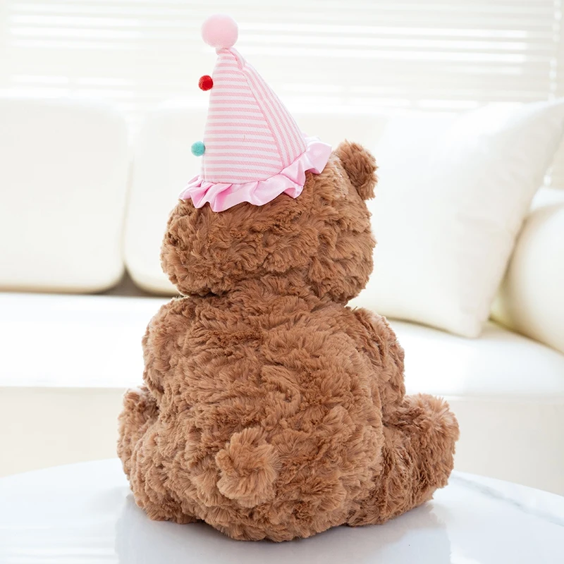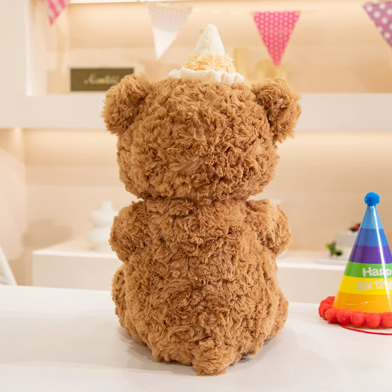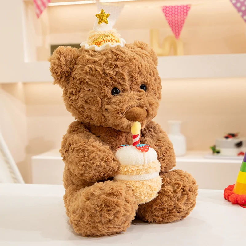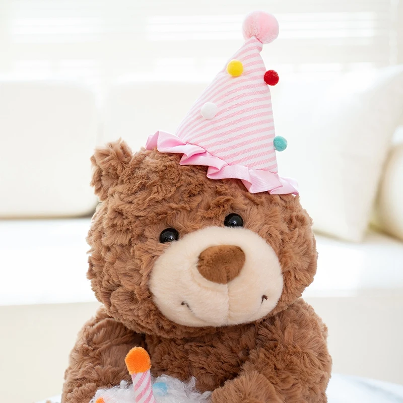 Kawaii Birthday Cake Teddy Bear Plush Toy Yellow And Pink Cake
