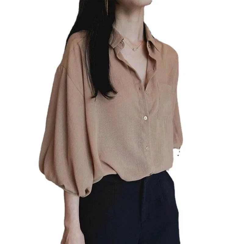 • Chiffon Material : Crafted from lightweight chiffon, this shirt offers a comfortable wear experience, ideal for spring and summer seasons.
